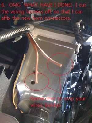 Con tijeras para alambre, corte aproximadamente de 1 pulgada en el arnés de cableado.