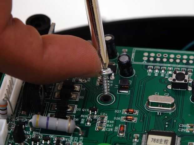 Vuelva a colocar la placa de circuito principal. Asegúrese de que se encuentra sobre los postes del tornillo dentro de bObsweep.