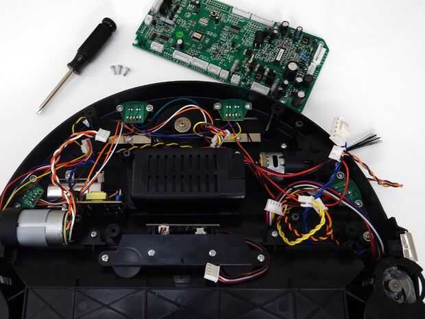 Un enchufe de circuito más amplio y multicolor que se une a la rueda izquierda de bObsweep.