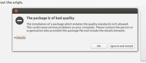 * NOTA. Si después de hacer clic en instalar y me dice que el paquete es de mala calidad puede que desee hacer alguna búsqueda y asegúrese de que no causará problemas. Si usted está queriendo que yo he proporcionado un enlace a él dirá, sin embargo funciona perfectamente en mi ordenador (HP Pavilion dv6). No puedo garuntee que para todos, pero es compatible con 13.10