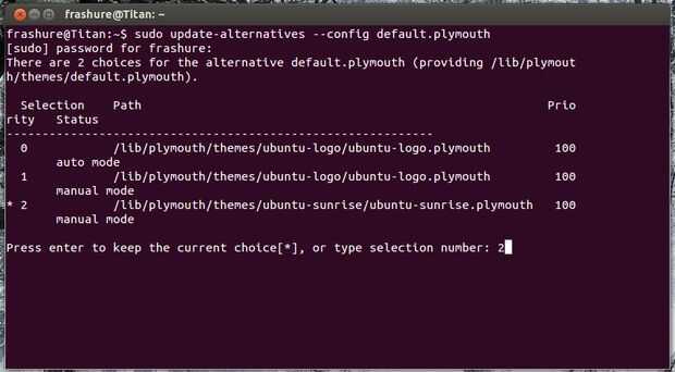 Después de presionar entrar se le mostrará algunas opciones. Sólo encuentra el que desea leer la última parte del texto central y escriba el número correspondiente. En la foto he escrito 2 porque ese era el número para Ubuntu Sunrise. A continuación, copiar y pegar: