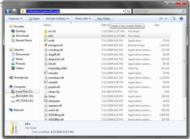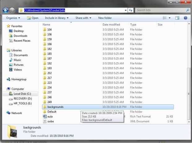 C:\Windows\System32\oobe ("C" es el disco de instalación de Windows 7). Si usted quiere saber cómo llegar, copiar y pegar la dirección en la barra de direcciones en "Mis documentos".