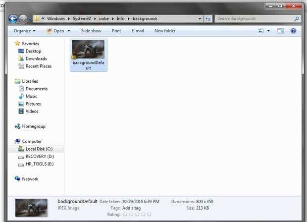 3. Si la imagen es no uno de las resoluciones compatibles mencionadas anteriormente, haga clic con el botón derecho la imagen y cambiarle el nombre a "backgroundDefault". El sistema operativo automáticamente estirará la imagen para ajustarse a la pantalla de inicio de sesión si cambiarle el nombre a esto.
