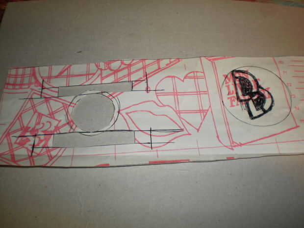 Tomando el Consejo de una crafter, encontró algunos viejos papel de contacto para utilizar como una plantilla y dibujó mi emblema en la plantilla.