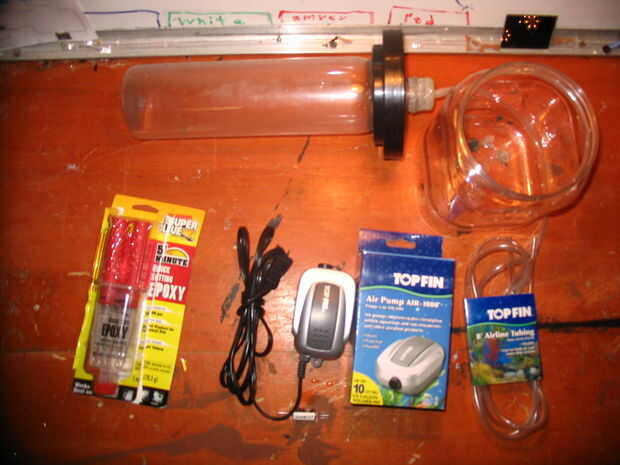 1. una bomba de aire he utilizado una bomba de peces que tengo de petsmart de 10 dólares.