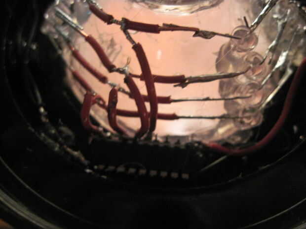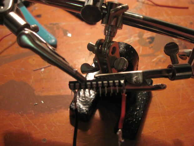 habrá 4 LEDs de cada color en 2 juegos de la serie (la serie es fue que conecte el positivo al negativo y uno positivo y uno negativo) y luego los que conectarse en paralelo que significa conectar positivo a positivo y el negativo al negativo. Ahora Conecte el cable positivo del color que quieras luz hasta primero al PB1 pin sobre el attiny y negativo para el conector de tierra, hacer que todos los colores hasta PB4. Si usas LEDs de color rojo se debe usar resistencias de 150 ohmios son deben sujetarse a la pata de tierra del led. Ahora haz tu zócalo dip y attiny programada. primero todos los puntos a la toma de la soldadura y luego poner en el attiny. No utilizo una toma porque no sabía que necesitaría pero hacer para mantener las piernas de última hora y de llegar a caliente.