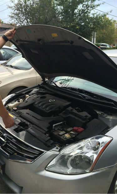 Una vez que tengas "apareció la campana" suelte el pestillo de seguridad de campana llegando a debajo de la parte delantera de la campana y sensación de una pequeña palanca o manija. No te preocupes, no hay nada a su alcance que puede hacer daño. Una vez que haya encontrado la palanca de empuje hacia abajo o hacia arriba, dependiendo del coche, intentando al mismo tiempo Levante la campana con la otra mano.