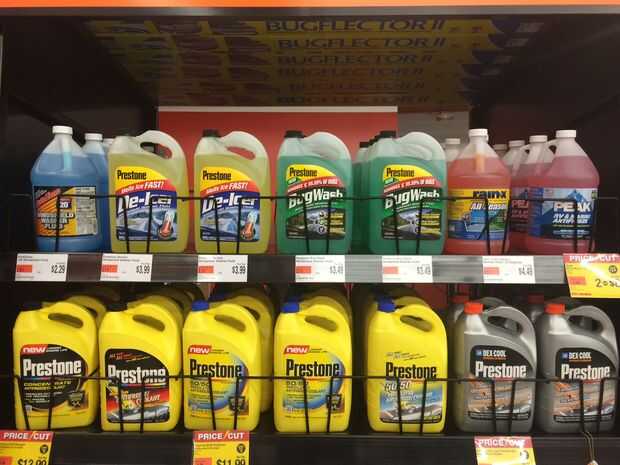 Ahora queremos ver los fluidos del limpiador de parabrisas. Vienen en una variedad de marcas y efectos. Hay líquidos que se realizan para el tiempo frío, fluidos que son para la limpieza de insectos en el parabrisas y líquidos para ayudar a empujar lluvia, haciéndolo más fácil de conducir en condiciones climáticas adversas. También puede encontrar fluidos que ofrecen combinaciones de estas opciones. Estas son sólo algunas de las opciones que están disponibles al seleccionar el líquido de elección. El precio de cada uno de estos depende de la marca y tipo de fluido que está buscando.