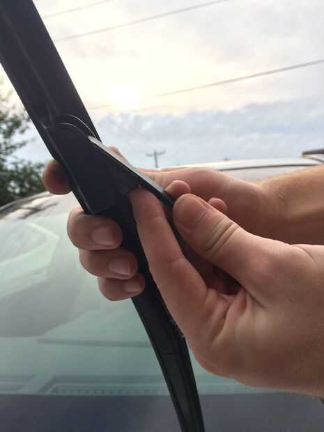 El método de extracción depende del tipo de limpiadores que tienes. En este caso fue una pequeña lengüeta que necesita para ser empujado hacia adentro, para deslizar el limpiaparabrisas. En otros limpiadores que tendrás que levantar la pestaña en lugar de empujarlo, pero siguen las mismas instrucciones después tirando de la lengüeta hacia arriba. Presione la lengüeta con el pulgar y fuerza el limpiador hacia abajo hacia el parabrisas. El limpiador debe deslice en el soporte metálico como se muestra y ser libre para moverse. Quitar el limpiador independiente del eje del soporte metálico totalmente deslizando el limpiador hacia arriba evitando la parte en forma de U de metal titular.