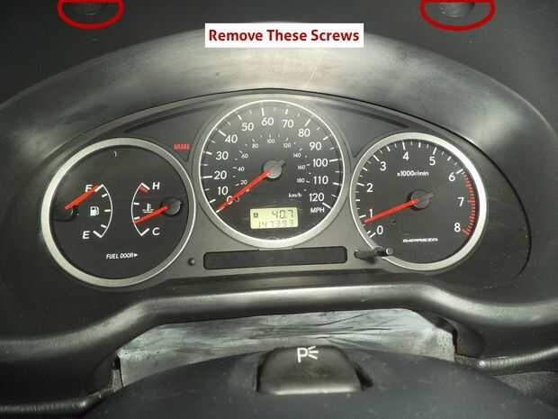 Sacar la pieza negra de adorno alrededor del conjunto de instrumentos quitando 2 tornillos en la parte superior de la pieza. Lo siento mi imagen se corta. Consulte el paso 2 para una mejor vista.