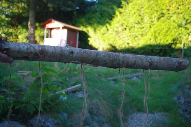 Si usted hizo demasiado pequeño para poner el hilo a través del agujero, echar un vistazo a cómo he logrado la tarea. Utilizando ducttape y una cuerda mucho más pequeño.