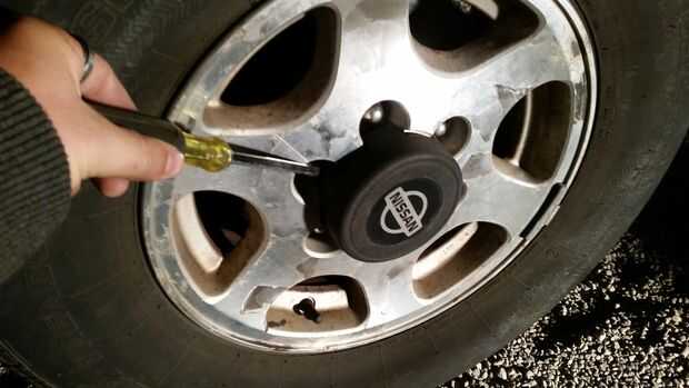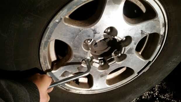 A continuación quitar el tapacubos (si existe) y romper el lugnuts sueltos con su plancha de llanta de la rueda que se trabajará en primer lugar. Esto hará que retiro de lugnuts mucho más fácil si están rotas sueltas ahora. Si se hacen después de usted ha alzado con el gato la rueda dará vuelta y hará difícil soltarse.