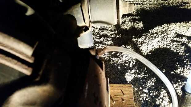 Esta herramienta está diseñada para ayudar a purgar los frenos sin cualquier otro allí para ayudar. Usted tendrá que localizar el tornillo que tiene un pequeño cono casi pezón forma en él que se enrosca en la parte superior de la pinza. Esto se llama un tornillo del purgador. Coloque un extremo de la manguera sobre el extremo del pezón. El otro extremo de la manguera se conecta a la botella. La botella tiene un imán que permite fijarlo a una superficie de metal. Decido poner en el bastidor o en algún punto por encima de la pinza.
