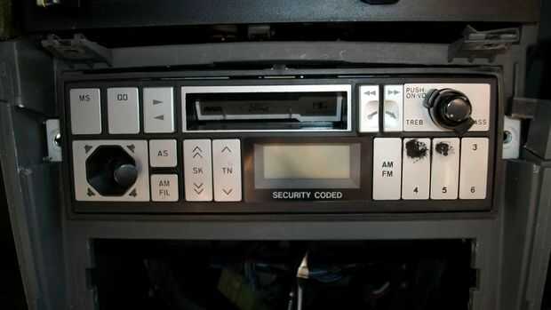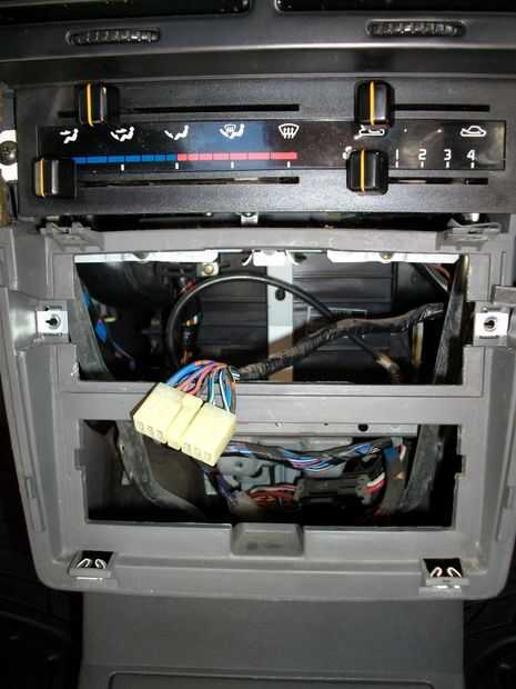 Ahora usted notará solamente dos tornillos a cada lado de la radio de acción, estos Desenroscar y empuje hacia adelante la radio de la parte posterior hasta que sale. Usted debe ser capaz de conseguir su mano en la parte trasera de la radio para empujarlo hacia fuera poniendo a través de la cavidad izquierda quitando el compartimiento plástico en el paso 1. Puede que necesite quitar el enchufe de antena cable y cable de altavoz desde la parte trasera de la radio antes de extraer la unidad completamente.