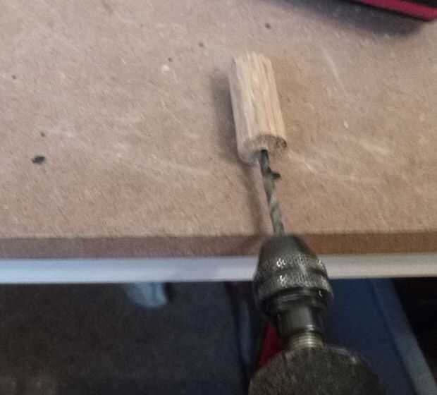 Estos son dos componentes, la base y el eje (barras). La varilla debe ser 11mm de diámetro, por lo que consiguió 12mm y solo utiliza un cuchillo para reducir el tamaño por lo que las barras insertar cómodamente en la silla. Tengo una varilla de diámetro 12mm, 30mm de largo y cortar 10 piezas de 3cm de largo. Entonces, utiliza mi Dremel para perforar un agujero ligeramente más pequeño que el tamaño del tornillo que va a utilizar.