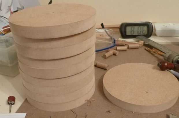 Tengo las bases de ebay, corte; Círculos de MDF 18mm de espesor.