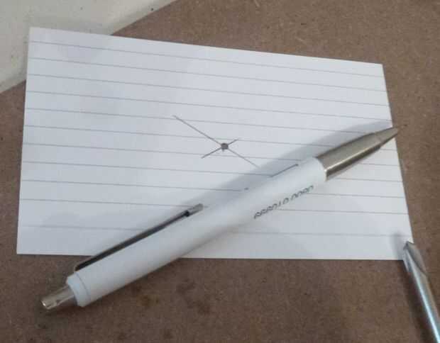 Utiliza un trozo de cartón para marcar el centro, y luego perforó un agujero en medio de las bases y luego el pedacito de taladro para hacer la tapa empotrada para tomar el tornillo