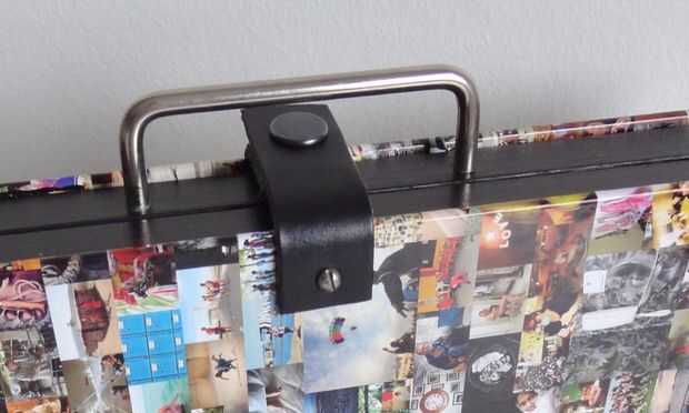 Pre-perfore un orificio en el extremo de ambas tiras de cuero para facilitar el atornillado
