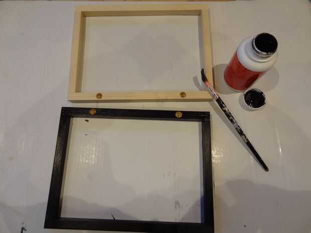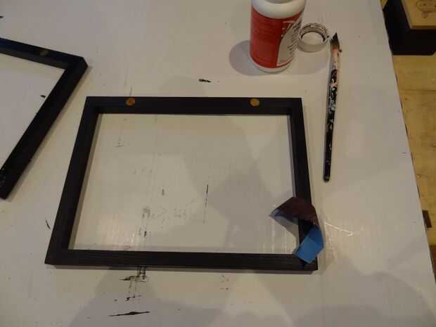 Pintar el marco de una vez, deje secar, lijar suavemente y pintar otra vez. Asegúrese de que dejar un lado el marco en blanco para pegar mejor a la cubierta