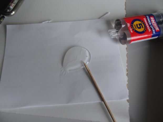 Mezcla pegamento utilicé epoxi y aplicarlo en su marco