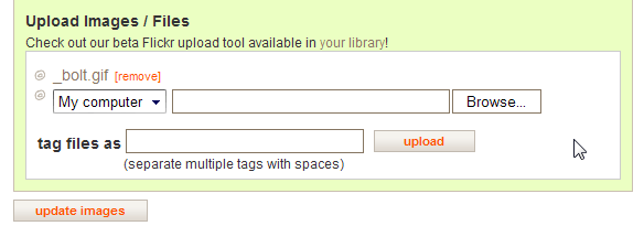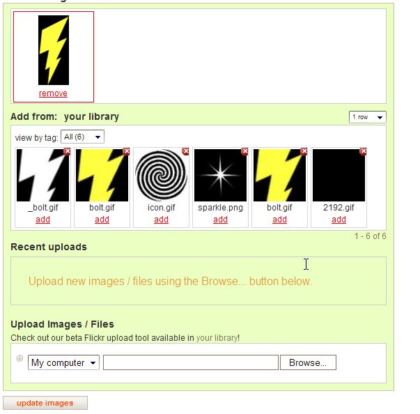 En la parte inferior de la página, subir una imagen. Una vez que ha terminado de uploadng, encima de la caja de carga, haga clic en "agregar". Una vez que ha hecho esto. Haga clic en "actualización de imágenes".
