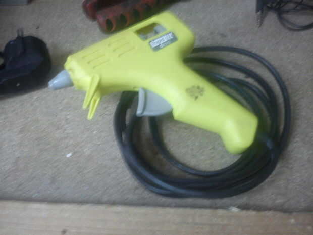 ¿tienes todo lo que necesitamos? ¿No estoy seguro? ' K U vas a necesitar: usado auriculares auricular n, n soldador soldar alambre, pinza (ilustrado más adelante), pegamento stick n gun, por supuesto, palillo del pegamento. Un palo es ampliamente suficiente.