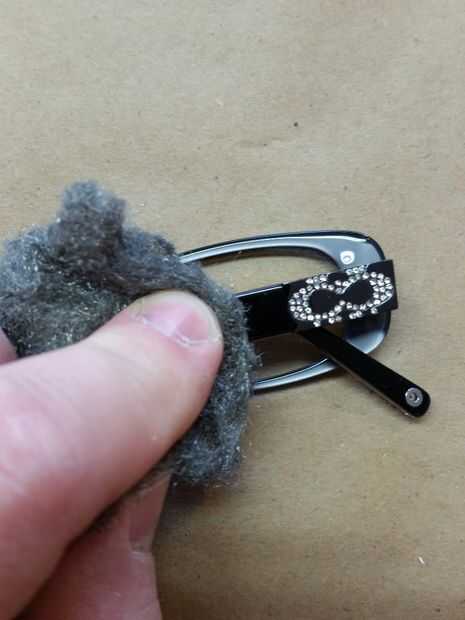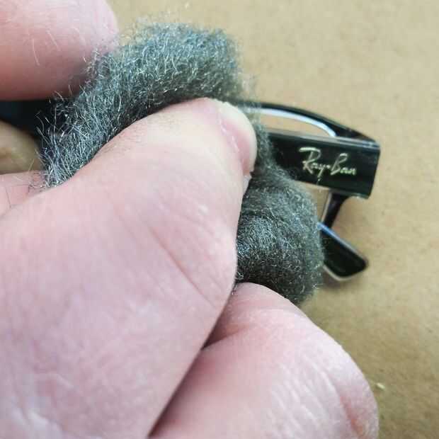 Utilizar la lana de acero para su marco bruto. Que desea desprender ese brillo que tiene y le dan un aspecto rasgunõs. Entrar en la ranura donde van los lentes también.