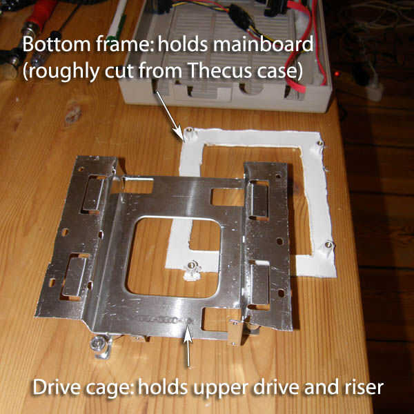 En la foto, verás el corte áspero marco junto con la canastilla para unidades de mutilados. Caliente-pegamento del marco en su lugar, para que los conectores de los Thecus están alineados con las aberturas en la parte trasera de 1541.