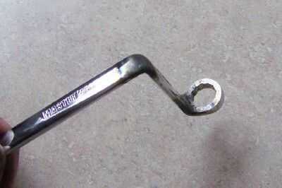 he decidido comprar un extremo de la caja de combinación 10mm y llave de extremo abierto para este proyecto. Pero necesitaba a modificarlo para trabajar dentro de los límites espaciales presentados por mi tablero de instrumentos. Decidí usar la parte de final del cuadro de 12 puntos de la llave, pero era demasiado grueso. Por lo tanto, tierra de ambos lados para hacerla más fina. No cabe entre la superficie interna del tablero de instrumentos y la parte superior de las cabezas de los pernos antes de molerlo. Realmente debe ser no más grueso que la cabeza del perno es alta. También se calienta la llave para doblar en dos lugares para un desplazamiento grande. Para el calentamiento antes de la flexión usé una antorcha de arco de carbono en un soldador del palillo de 230 voltios. Ver detalles adicionales en los cuadros de texto amarillo.