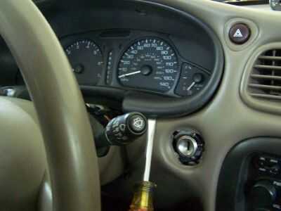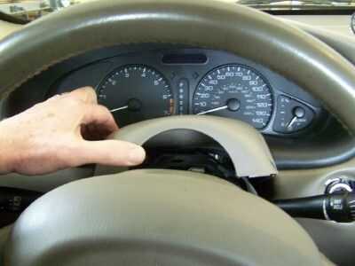 Con el racimo del instrumento retirado, se puede ver la parte superior de la llave de encendido de la parte inferior derecha de la apertura del racimo del instrumento.