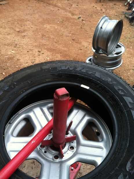 Necesita el interior de la llanta para despegarse de la parte exterior de la llanta. Deslice la barra pasado el grano que sólo sacó y gancho en el otro talón. Estas ruedas tienen neumáticos sensores de presión. Ser super cuidado de que no romperlos!!!!!!