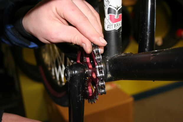 Esto puede ser aterrador, pero no te preocupes lo va a estar bien! Para obtener la cadena de nuevo, tienes que poner la cadena en la parte superior de la rueda dentada y rápidamente gire las bielas con la mano opuesta.