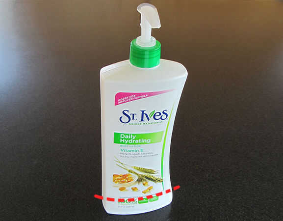 cuando una botella de loción de mano de la bomba está demasiado vacía a los espesos, suele haber demasiada loción a la izquierda para tirar la botella. La línea roja muestra cuánta loción puede dejarse en la botella cuando la bomba se da por vencido. Es fácil de quitar la bomba y cerrar la parte superior para permitir la botella a ser al revés. Si usted recibe la misma marca hay no hay necesidad de arreglar una tapa de nuevo cada vez, sólo guarde su cerrado parte superior hasta que se necesite.