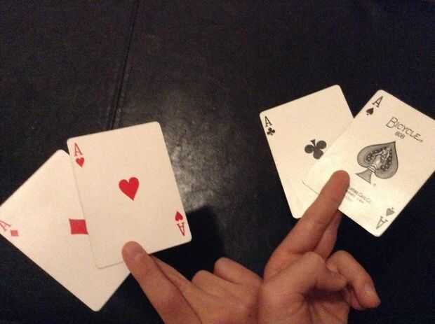 1 primero tomar los cuatro ases de la baraja y decir al espectador "si nos fijamos en estas tarjetas, se puede notar que la tinta en el as de espadas es en Different places than-" ................................................................................................. -" (Ahora toma la carta superior de la cubierta, demostrarles y decirles lo que es entonces lo pones de nuevo)