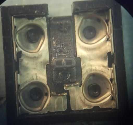 Note que en la placa trasera hay dos hendiduras que fueron moldeados allí para proporcionar una cubierta para los contactos establecer en.