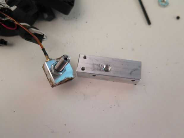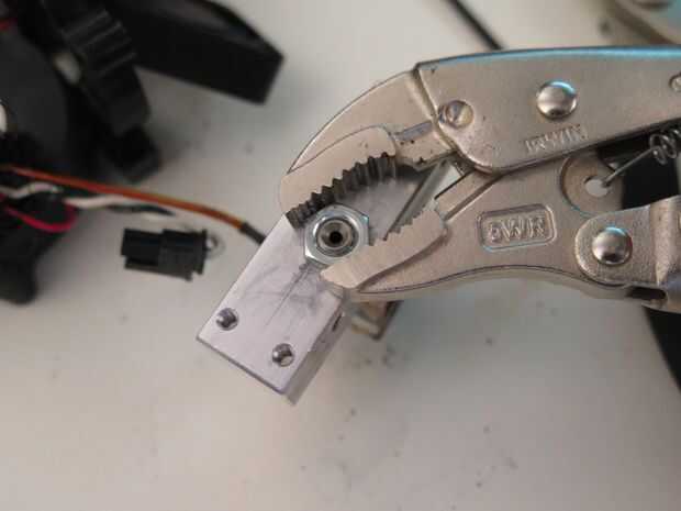 Agarra un par de pinzas, vas a necesitar uno para mantener el bloque y y a desenroscar la tuerca que sostiene el conjunto del bloque calentador.