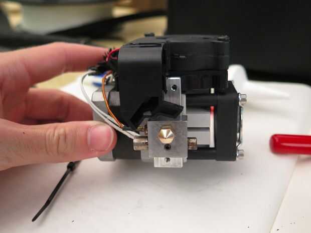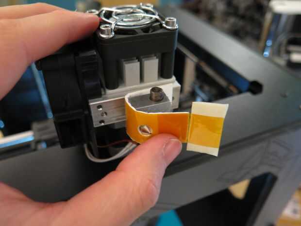 Ahora seguir adelante y atrás de estos pasos, vuelva a montar el cabezal de impresión 3D. Antes de poner el carro bach a la Makerbot seguir adelante y añadir la cinta de calefactor alrededor de la manzana de extrusión de aluminio. Vuelva a colocar e imprimir una parte de la prueba para asegurarse de que todo aún está funcionando correctamente!