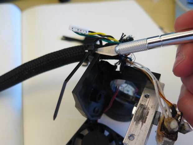 Con cuidado corte el cordón mantiene juntos los cables va a la cabeza de impresora