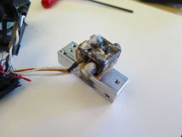 Coge su llave y destornillar el ventilador del soplador de la Asamblea del bloque. Este paso es realmente eliminar todos los componentes de plástico del bloque de aluminio. Preste atención a qué lado se encuentran los orificios de tornillo en el bloque de aluminio en relación con la parte delantera de la máquina. Montaje requerirá todo para colocarse con precisión.