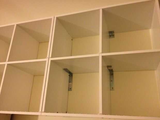 No le estoy dando mucha información sobre la Asamblea, pero se trata de los cubos superiores juntos y fijación a la pared con soportes resistentes. Hacerlo con ayuda de alguien y use su sentido común,... o para ella.