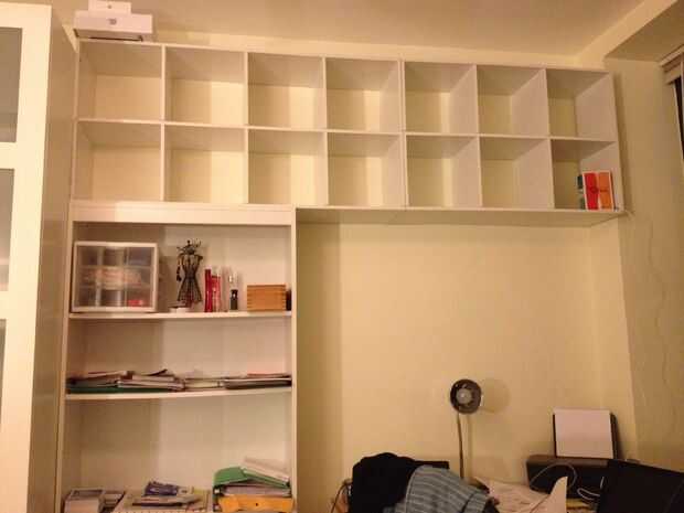 -otro estante del cubo de 3 x 2, $57 para llegar a la pared que mira hacia el mostrador de