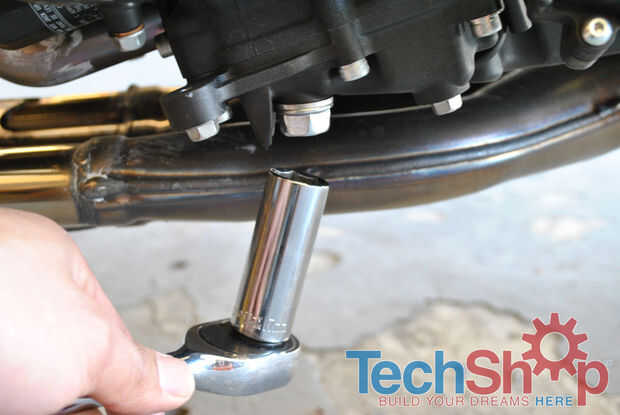 Para quitar el perno de drenaje, simplemente use su llave. Si es difícil de quitar, prueba usando un martillo de goma en el mango del zócalo.
