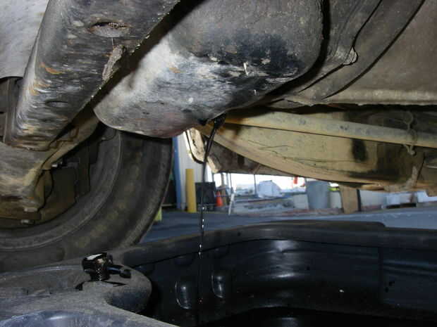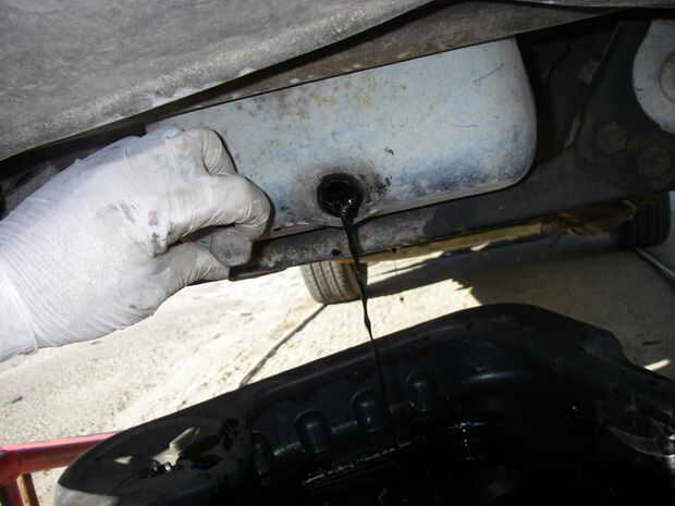 Mi carro tiene un sumidero dos jorobas con un divot en el eje delantero. Hay dos tapones diferentes que han de ser eliminados en los dos puntos bajos. Antes me enteré de esto mis cambios de aceite no parecen muy eficaces. El aceite de la varilla era negro incluso después del cambio de aceite.