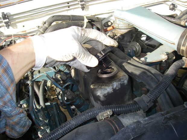 Mi carro es un diesel no tiene bujía. Y pensé que haría un muy buen trabajo ejecutando el coche. Aceite sopló hacia fuera en ambas direcciones de los dos agujeros de desagüe. Hizo un gran lío bajo el camión.
