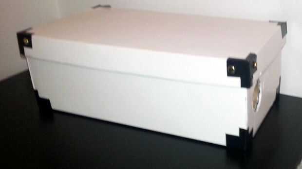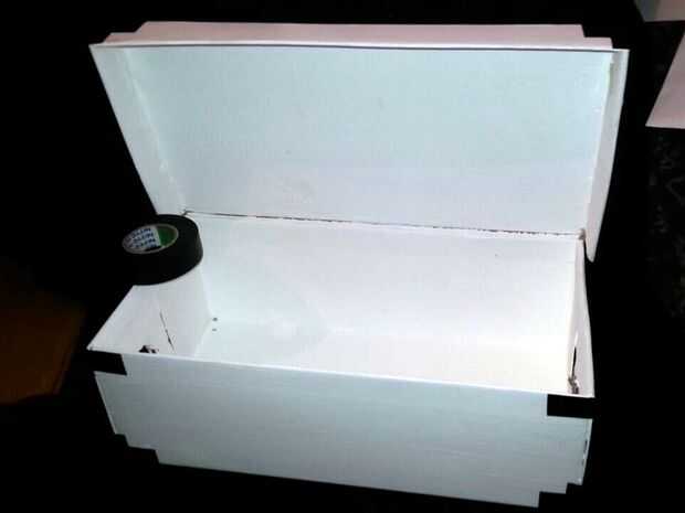 Paso 5: Obtener algunos pegamento - resistente durará más tiempo. A lo largo del borde de la tapa que cortó y la parte posterior de la pieza de la parte inferior de la caja de zapato, pegamento para arriba y pega en!