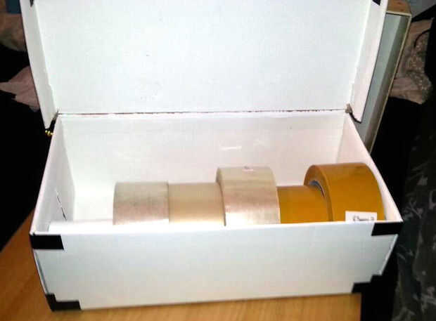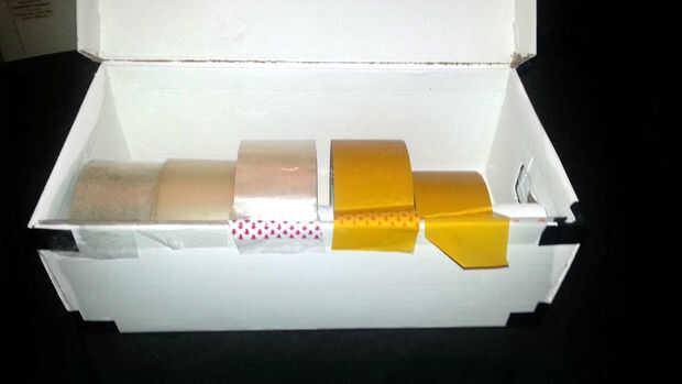 Paso 10: Tomar una caja usada abrigo alegres, cortar el lado con el borde serrado y usando el pegamento, pegar en la parte interior de la caja. (Cortar la cinta guardado en la caja - pero esto no fue lo suficientemente fuerte para este tipo de cinta)