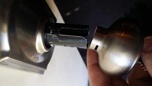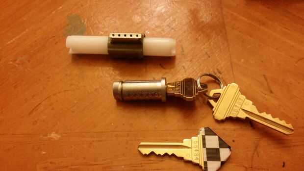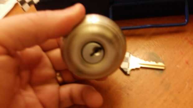 Entre un cerrojo y un candado con llave simple, sinceramente, para mí, fue mucho más complejo para mí hacer la cerradura con llave que el cerrojo. Esto fue debido a que para llegar a la tina, tuvo que ser instalado en la puerta antes de que pudiera quitar el vaso para llegar a esos pins que necesita cambiar. Era un día frío, ventoso, húmedo ese día tuve la oportunidad de abordar este proyecto que significó una puerta abierta, mientras que logra el bloqueo. Una vez que he podido extraer el cilindro del vaso era un pedazo de pastel.