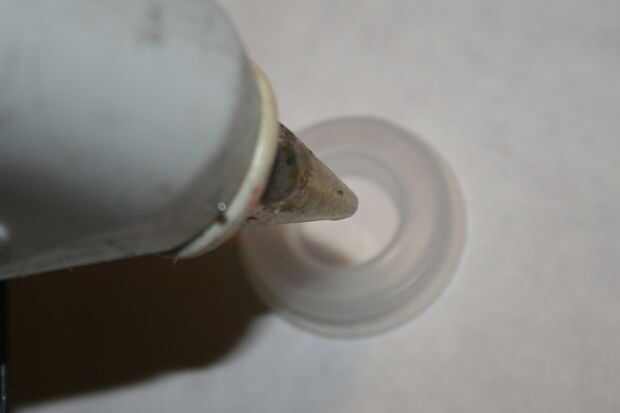Agregar el pegamento alrededor de la tapa del imán que está en la tapa. NO más de hacerlo. Una capa delgada agradable que permanece dentro de la tapa funciona mejor.