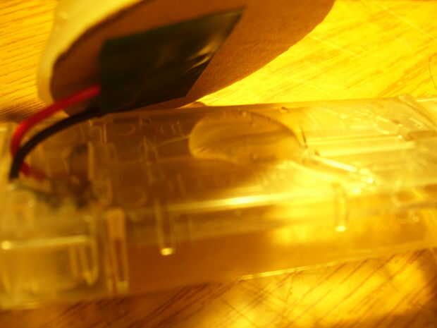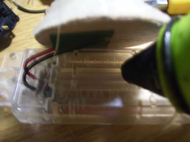Pegamento de la cartulina a la caja de batería y si necesita fijar el interruptor también. Involucrar a la caja de la batería con el papel de embalaje.