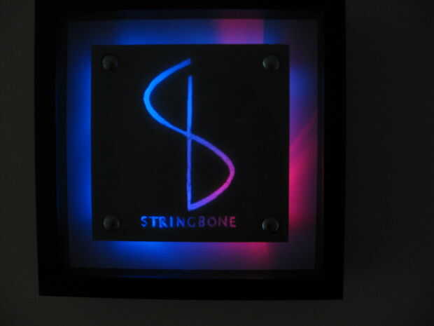 La idea era hacer un batería, función de iluminación con logo y nombre de la banda. Así, él podría colgar para arriba en cualquier lugar, sin preocuparse de tener que enchufarlo.